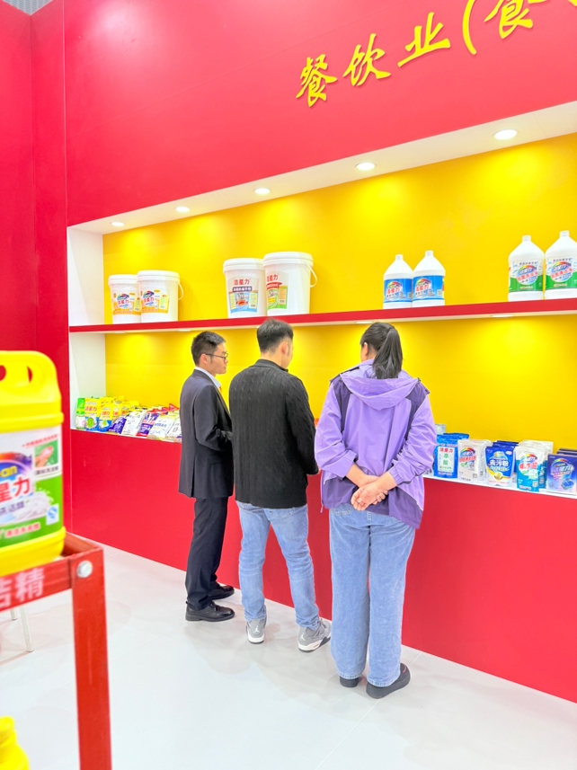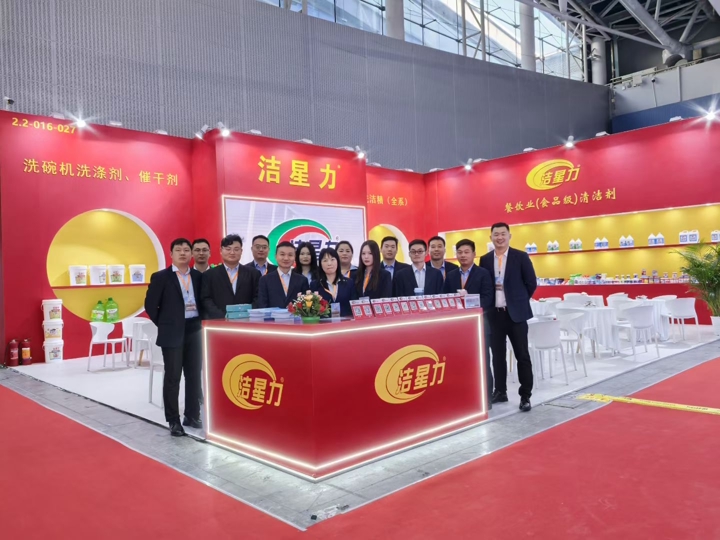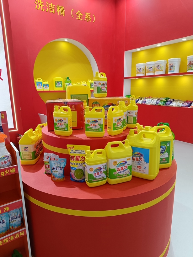 本次潔星力參展產品有王牌餐飲清潔產品——潔星力除垢劑、密胺餐具清潔粉、去污粉等,廚房油污清潔產品——除油片、油污凈、洗潔精,衛生間清潔產品——衛生間清潔液、草酸潔瓷粉、衛生間清潔粉等。同時還有潔星力新推出的洗碗機專用洗滌劑和烘干劑。
