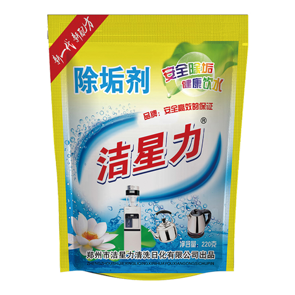 2.電水壺清洗:取本品兩勺約20g,放入普通玻璃杯,再加滿清水一起加入電器,通電5min后停止,再浸泡20min即可(電水壺垢輕時用熱水直接刷洗即可)。