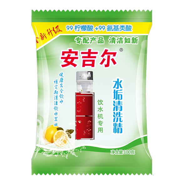 斷開(kāi)電源,取下水桶,打開(kāi)飲水機(jī)后排水閥,放盡機(jī)內(nèi)存水,關(guān)閉閥門(mén),將100g水垢清洗精倒入盛有約1000ml(2斤)清水的盆中,攪拌均勻,然后加入飲水機(jī),通電,加熱5min后斷電。浸泡15-30min,同時(shí)從接水口用水杯放水再加入機(jī)內(nèi),循環(huán)3-5次,然后打開(kāi)機(jī)后排水閥,排盡清洗液,用清水沖洗兩遍,即可使用。