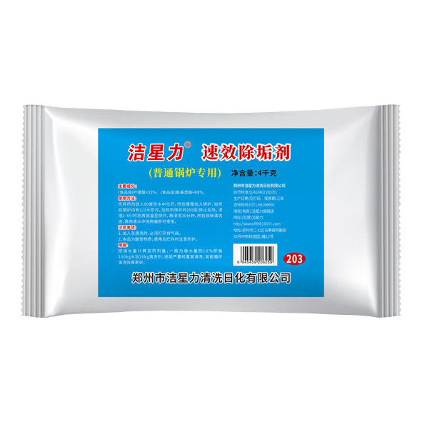 先將除垢劑放入80度熱水中化開,然后慢慢加入鍋爐,加完后鍋爐內有2/3水即可,加熱到快開時(80度)停止加熱,浸泡2-4小時后再加溫至快開,再浸泡30分鐘,然后放掉清洗液,再用清水沖洗兩遍即可使用。