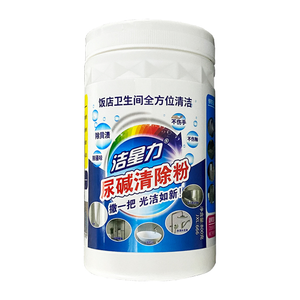 將尿漬灑水浸濕,把清潔粉均勻撒在污漬上面,浸泡5min后,用噴壺向污漬上均勻噴灑清水,再浸泡5min后用清水沖刷,即可干凈。(較厚未清洗干凈的污漬,二遍清潔浸泡的同時用馬桶刷刷洗幾下,然后用清水沖洗即可。)